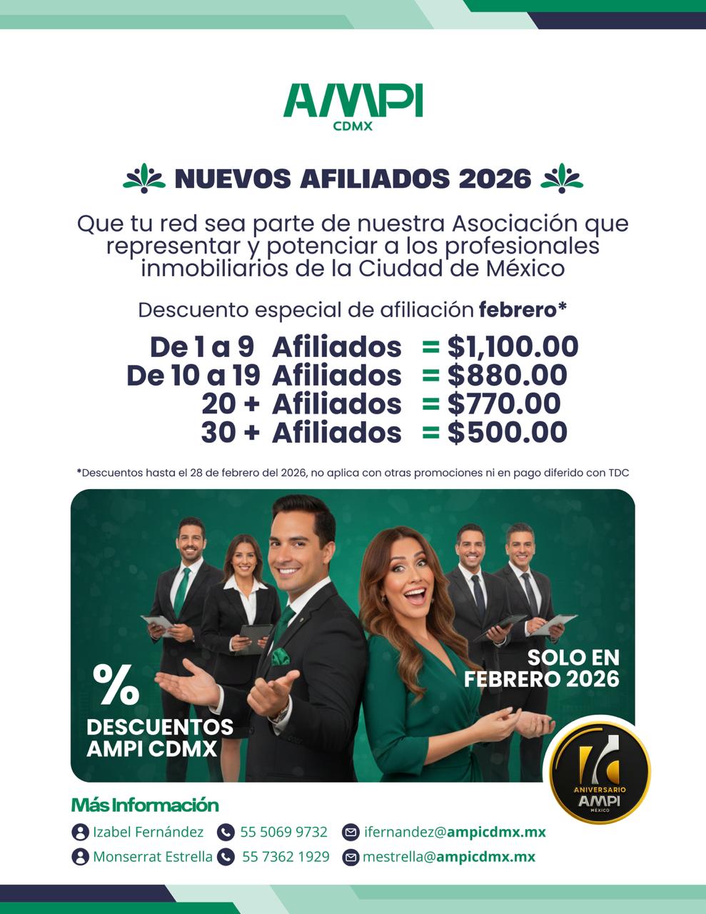 Durante el mes de febrero, se encuentra vigente la promoción para tus asesores que aún no se encuentran afiliados a AMPI CDMX. Les invitamos a aprovechar esta oportunidad para que los integren.